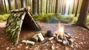 Build a bushcraft basecamp with natural shelter, fire pits, water sourcing, and essential tools for long-term wilderness comfort.
