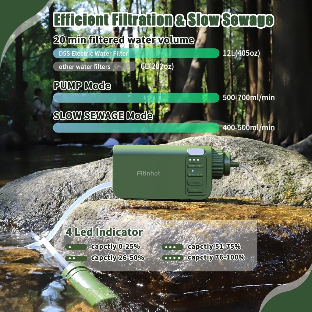 In the realm of outdoor adventures, ensuring access to clean water is paramount. The Fitinhot D5S Electric Portable Water Filter emerges as a game-changer, promising not just hydration, but safety and convenience.