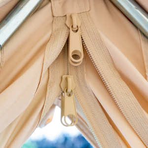 The MC Detachable Groundsheet Glamping Camping Tent is made from high-quality materials that can withstand various weather conditions. The flooring is tough and can be placed on rougher terrain than most tents, ensuring durability and longevity.