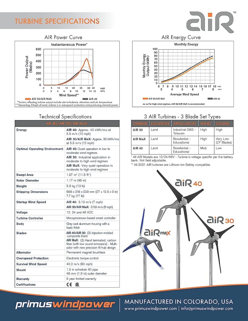 Users have been impressed with the Primus Wind Power Air 40 Wind Turbine. They’ve praised its efficient operation, quiet performance, and the reliable power it provides. One user noted, “The Air 40 is quieter than the AIR 30, and though technically it has a lower watt rating (AIR 40 is rated at 160 watts and AIR 30 is rated at 400 watts), the Air 40 operates efficiently across a wider range of wind speeds.”