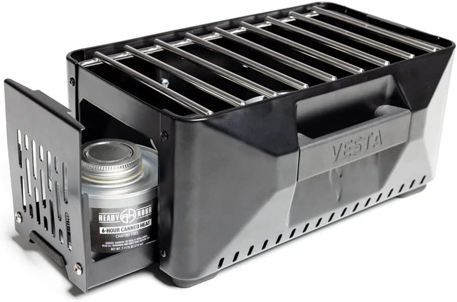 The VESTA stove operates using up to three cans of InstaFire 6-Hour Canned Heat, providing a self-powered cooking solution that works efficiently with minimal smoke and flames. This makes it an ideal choice for situations where discretion is key.