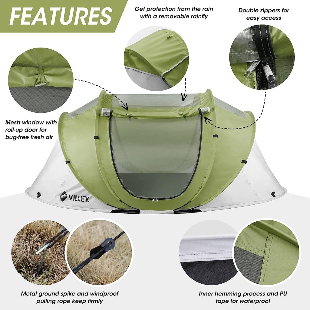 VILLEY Waterproof Automatic Pop Up Tent: Your Lightweight and Convenient Shelter for Outdoor Adventures